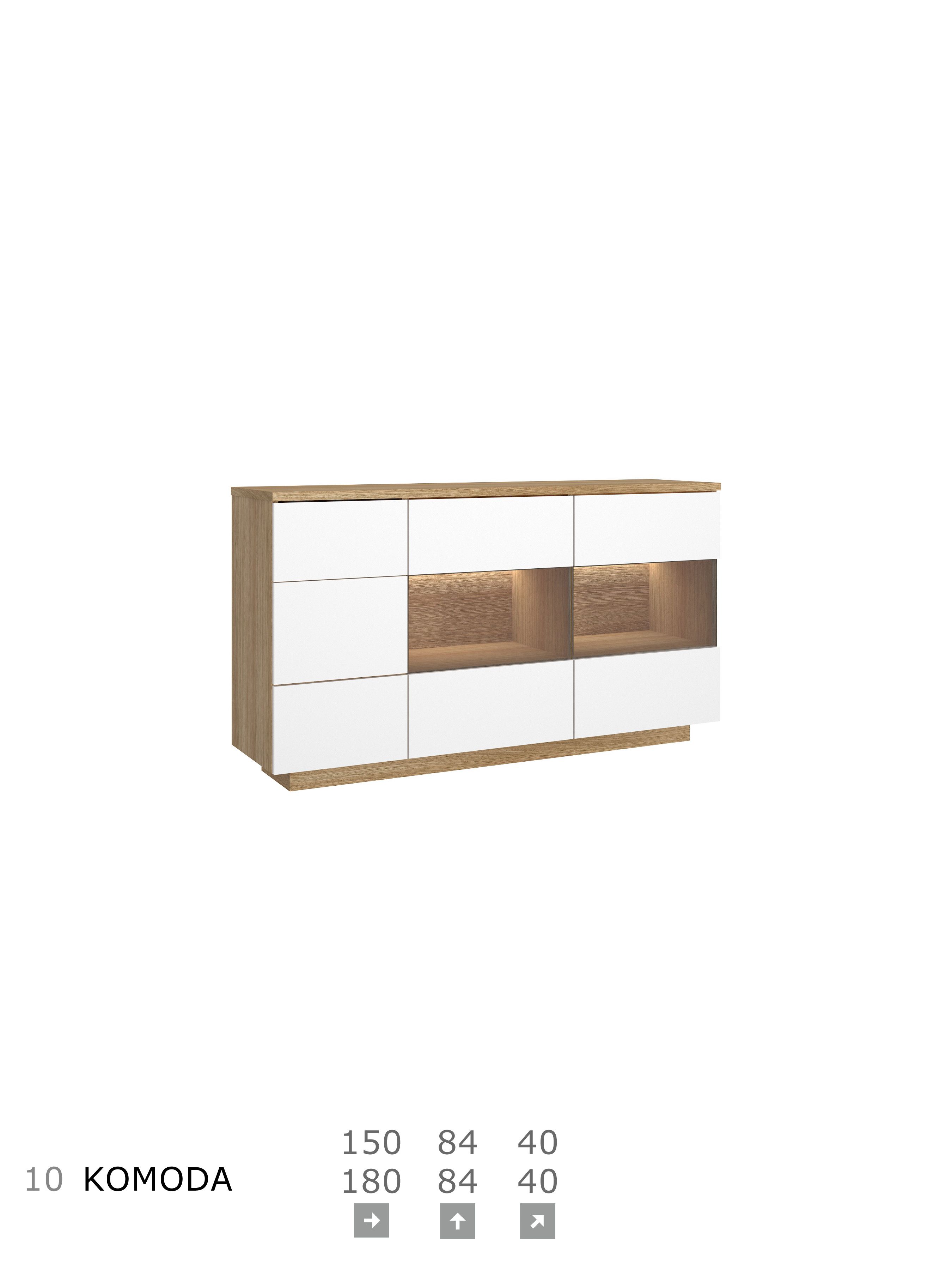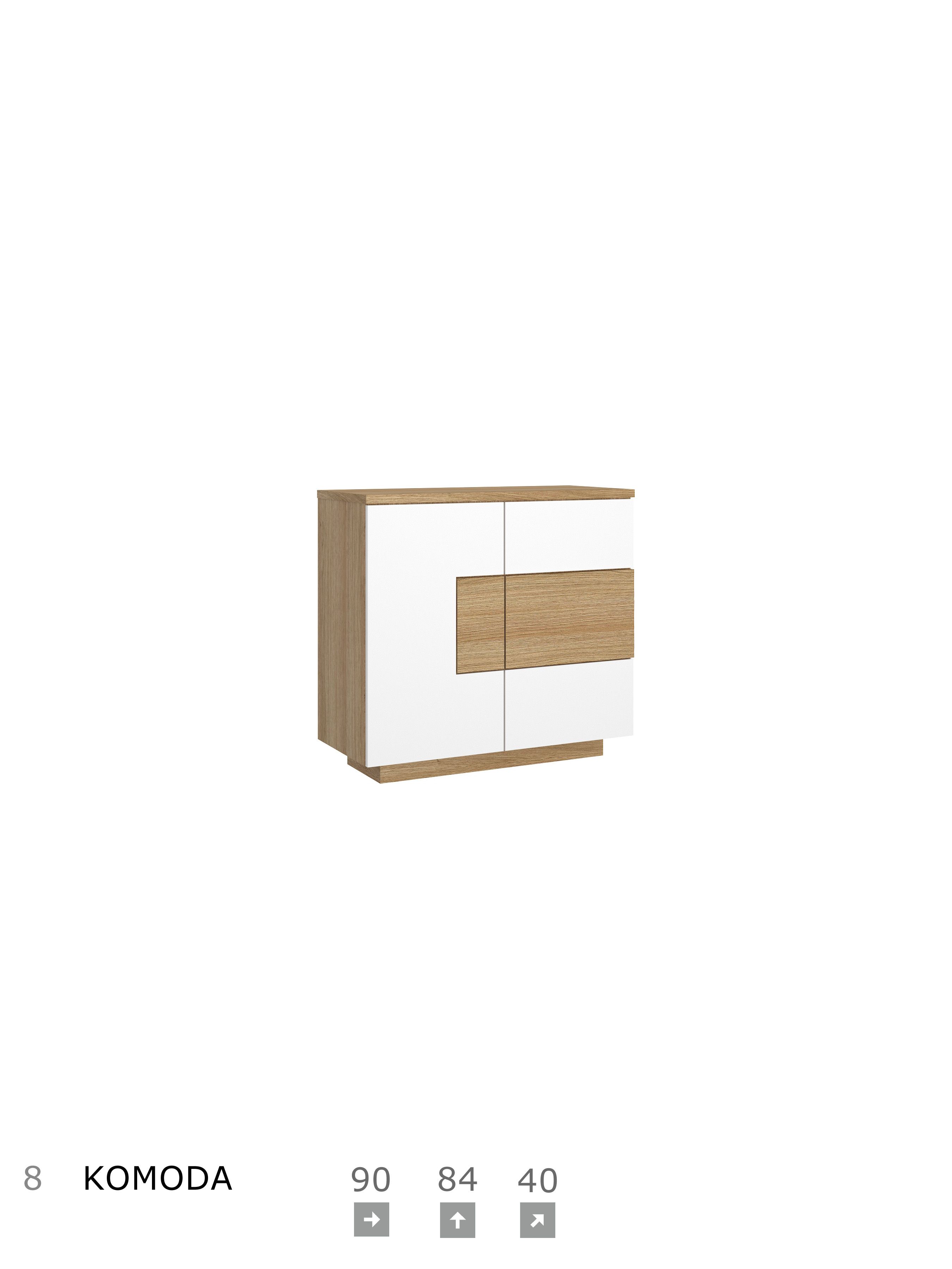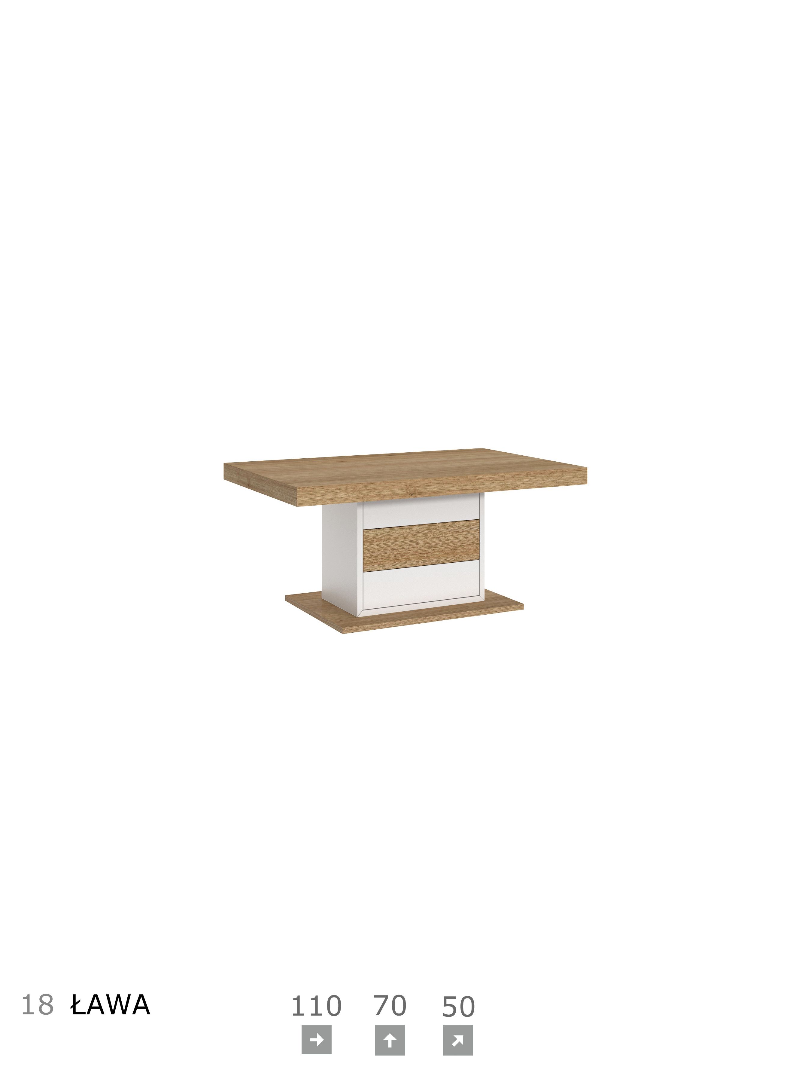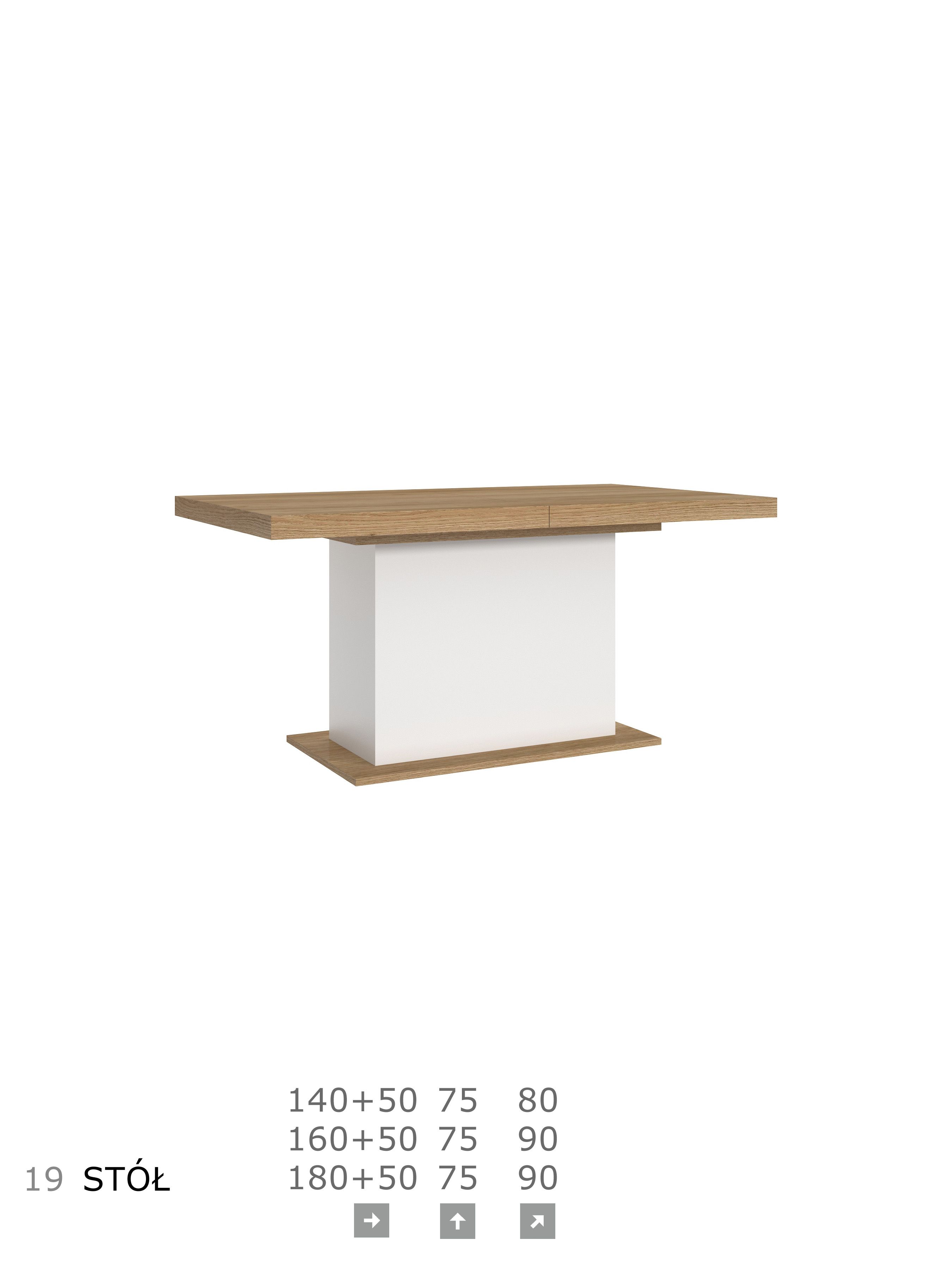 Meble z frontami w kolorze białym lub popielatym wraz z fornirem nadają pomieszczeniu ciekawy i nowoczesny wygląd. Kolekcja oferuje bogaty wybór brył modułowych. Daje szerokie możliwości aranżacji wnętrz, pozwalając tym samym na stworzenie harmonijnej i komfortowej przestrzeni. Stoły mogą być zastosowane do każdego pomieszczenia. Stół klasyczny lub na kolumnie, z funkcją rozkładania, sprawdzi się zarówno w pokoju o większej jak i mniejszej powierzchni. Meble z przeznaczeniem do pokoju dziennego, jadalni i sypialni.